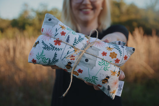 Floral Bee Print - Lavender Rice Bag - Large Hot and Cold Pack